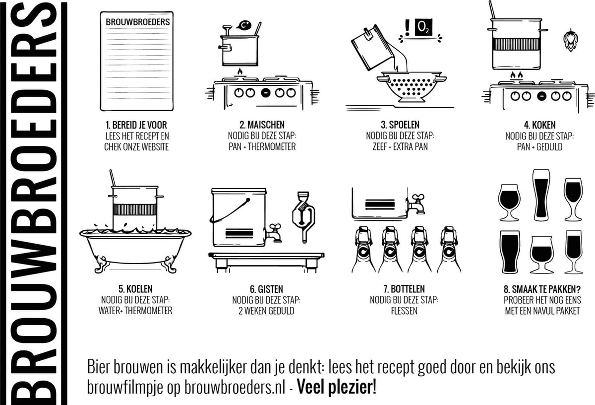 Benieuwd naar het complete Brouwbroeders- aanbod? Zoek dan op ‘Brouwbroeders‘ in het zoekveld bovenin. Brouw thuis je favoriete speciaalbier met de handige starterspakketten. De smaak te pakken? Bestel dan een handig navulpakket en maak het jezelf gemakkelijk met de brouw- hulpmiddelen. Met keus uit 10 verschillende bieren zit er vast iets voor jou bij!