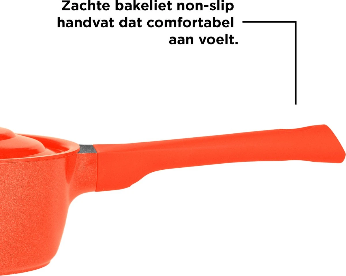 Let op! De handvatten van deze set kunnen heet worden. Wij raden daarom pannenlappen of ovenhandschoenen aan. De pannen zijn niet vaatwasmachinebestendig