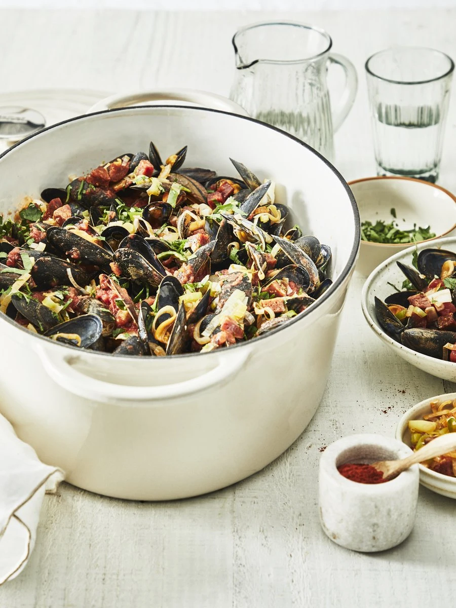 - Robuuste geïntegreerde handgrepen voor een veilige hantering van kookplaat tot tafel
